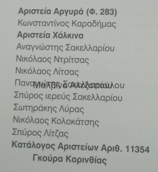 Παρακάτω παρουσιάζονται τα ονόματα των αγωνιστών από τη Γκούρα, οι οποίοι έλαβαν αριστεία για την ανδρεία τους στην Επανάσταση του 1821 και τη δράση τους στον αγώνα υπέρ της ελευθερίας της Ελλάδας.