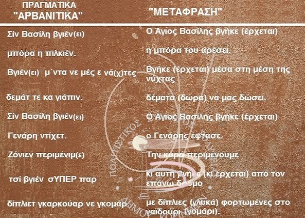 O Γεώργιος Μπαμπινιώτης αναφέρει για τα αρβανίτικα: «Πρόκειται για µια Αρβανίτικης προέλευσης διάλεκτο, η οποία βαθµηδόν – µια και οι Αρβανίτες ήταν πάντοτε δίγλωσσοι, αν δεν ήταν µονόγλωσσοι (οµιλητές της Ελληνικής)- υποχώρησε µπροστά στο γόητρο και στην επικοινωνιακή δύναµη της επίσηµης γλώσσας (της Ελληνικής). Σήµερα είναι πολύ λίγοι οι οµιλητές των Αρβανίτικων, µερικά µεγάλης ηλικίας άτοµα, τελευταία αποµεινάρια µιας διαλέκτου που µιλήθηκε πολύ περιορισµένα, σκόρπια και άτακτα επί πέντε και πλέον αιώνες, έχοντας διασωθεί για µακρό διάστηµα χρόνου µέσα από την προφορική παράδοση»
