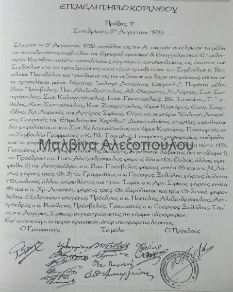 Το παρακάτω έγγραφο αφορά το πρώτο εκείνο Δ.Σ. του 1936 του Επιμελητηρίου τα μέλη του οποίου έθεσαν τα θεμέλια για τη σημερινή γιγάντωση του: