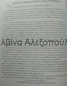 “Μετά την απελευθέρωση, το Ελληνικό κράτος βρισκόταν σε δυσμενέστατη οικονομική κατάσταση, για αυτό οι Κυβερνήσεις, εκτός της βοήθειας που έλαβαν από τους συμμάχους, κυρίως από ΗΠΑ και Αγγλία, επέβαλαν και διάφορες φορολογίες με τη μορφή εκτάκτων εισφορών. Τα μέτρα αυτά επιβάρυναν ακόμα περισσότερο το ήδη εξαθλιωμένο εμπορικό κόσμο. Μια ήπια αντίδρασή τους ήταν η αποστολή υπομνημάτων διαμαρτυρίας”.