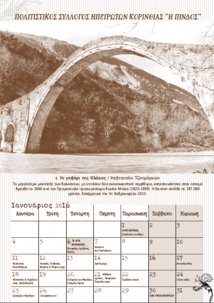 Ημερολόγιο 2016 “Τα πέτρινα τοξωτά Γεφύρια της Ηπείρου”