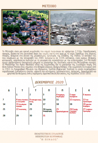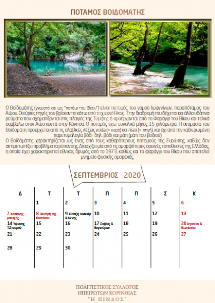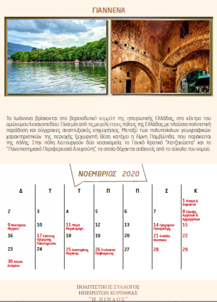 Ημερολόγιο 2020 “Τουριστικοί Προορισμοί στην Ήπειρο”