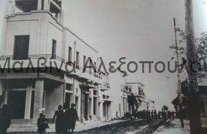 Στον δρόμο διακρίνονται καθαρά οι γραμμές του τρένου, που περνούσαν από την οδό Δαμασκηνού.