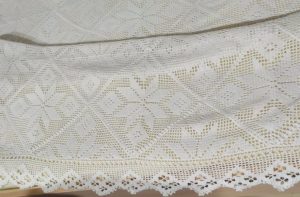 Το ριχτάρι αυτό είναι κεντημένο από τη γιαγιά Κατίνα, κάτοικο Λεχαίου, την δεκαετία του 60. Το κέντησε και το έραψε μόνη της και χρησιμοποιείται σαν κάλυμμα σε κρεβάτια και καναπέδες.